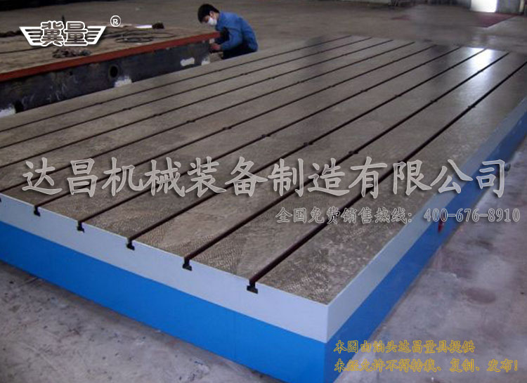 鑄鐵焊接平臺有多種款式,有平面的、帶條形孔的、帶圓孔的、帶T型槽的,T型槽焊接平臺是指的帶T型槽的這種。平面的焊接平右適用于各種大型工件的焊接工作。工作面上有圓孔或條形孔的上面的孔主要是讓它漏焊渣,方便清理鉚焊時(shí)的一些鐵渣和焊接廢棄物。帶T型槽的焊接平臺上在的T型槽主是要用來固定焊接件的。