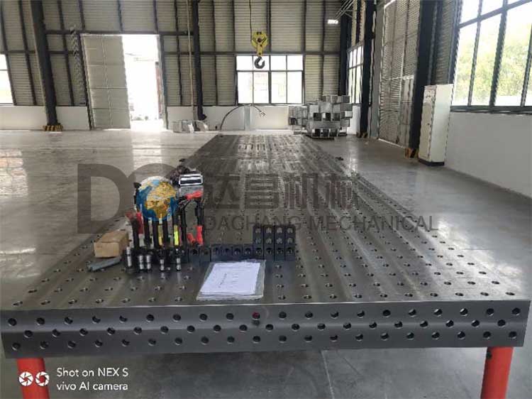 工作臺的五個工作面都有100x100 mm(D28系列)或50x50mm(D16系列)的帶有網格標注的孔。其五個面的平面、平行、垂直公差精度以及孔與孔的位置精度都是非常高的,保證在臺面上的定位和臺面與其它模塊之間的組合都具有足夠的使用精度要求。基礎臺面的尺寸從1000x1000mm到4000x2000mm可以任意選擇,非標尺寸可以定做。